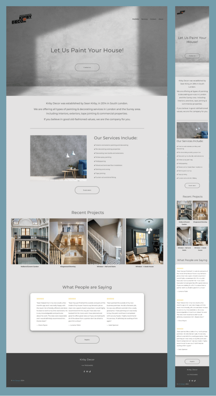 Kirby Decor was established with a solid reputation for quality painting and decorating work, but their digital presence wasn't reflecting their professionalism. The existing Wix website was difficult to update, lacked mobile responsiveness, and couldn't showcase their portfolio effectively.